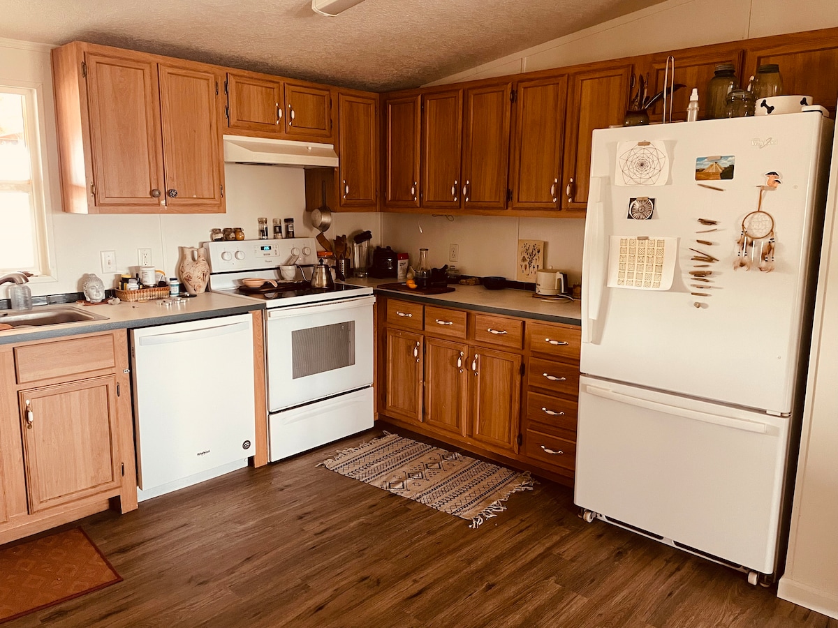 Welcome to our casita! About 4 miles from I-40 and right by route 66. Great rest spot for travelers. We are in a calm and quiet neighborhood. The casita is located in the back of our home and has a private gate and entrance. Prompt responses from inquiries and our place is always ready for same day bookings. Wifi, refrigerator with freezer, washer and dryer, and comfortable queen mattress.