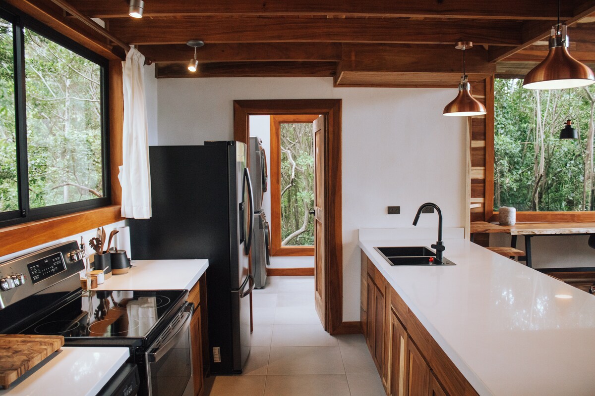 Jaguar Houses is conveniently located between the center of town and some of the most popular attractions in the area such as Canopy Zip Lining, Suspended Bridges and the Santa Elena Nature Reserve. Inspired by Nordic architecture, Jaguar is composed of 3 independent homes, elevated on pillars, giving you the impression of floating on the trees. The 3 houses are identical however the view can slightly change from one to another. The photos used for each listing are a mix of the 3 houses.