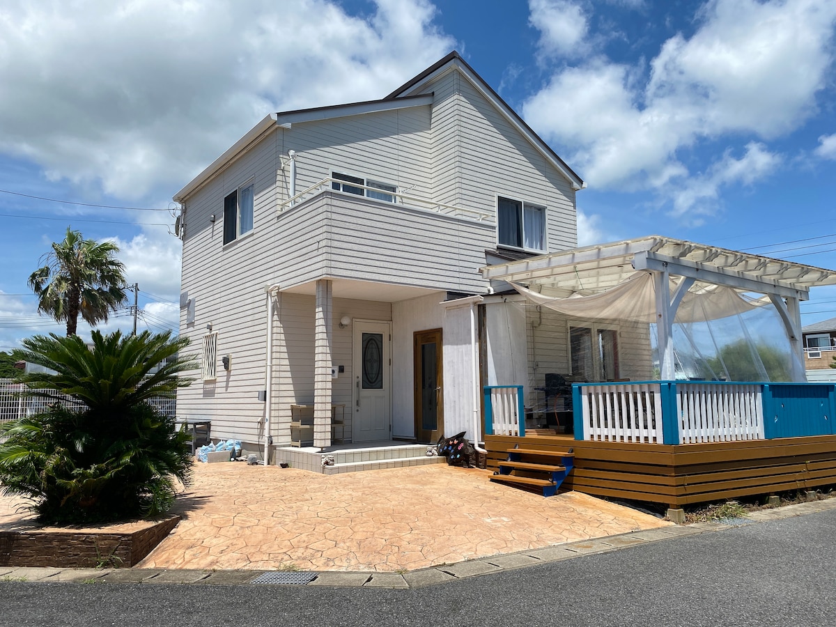 [Shida House Building A, Entire house rental, with charcoal BBQ stove] 5 minutes to Ichinomiya Olympic venue beach, with a south-facing garden