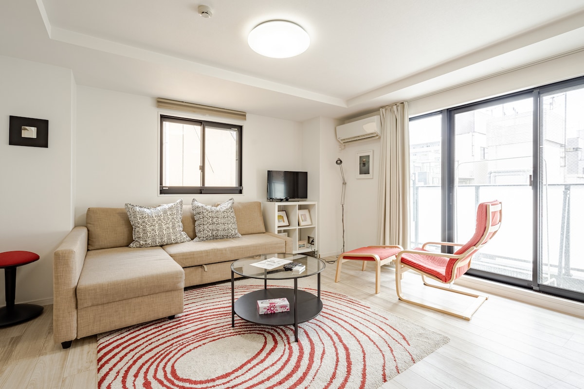 Located in Central Tokyo! You’ll especially love that you can: ・Walk to the nearest station within 3 minutes ・walk from Kyoka Square and Shintomi Inari Shrine ・free Wifi, TV, washing machine, full kitchen ・Free Chromecast rental for your favorite show ・Maximum 5 guests: 3 adults + 2 children or only 4 adults *Please note that some rooms may have slight variations in layout and furniture. ****NOTE: NO PARTY ALLOWED****