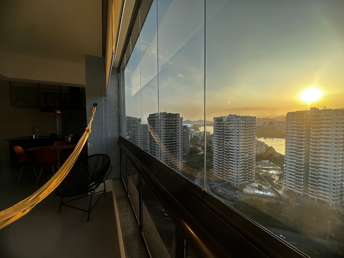 Embrace simplicity and relax in this peaceful, cozy, quiet, and stylish space. It was designed and structured to provide comfort and coziness, and to become a perfect urban retreat. Located in a central point of Barra da Tijuca, close to malls, bars, restaurants, supermarkets, and Barra da Tijuca beach. It is on a high floor, with a beautiful view of the sea of Barra da Tijuca.