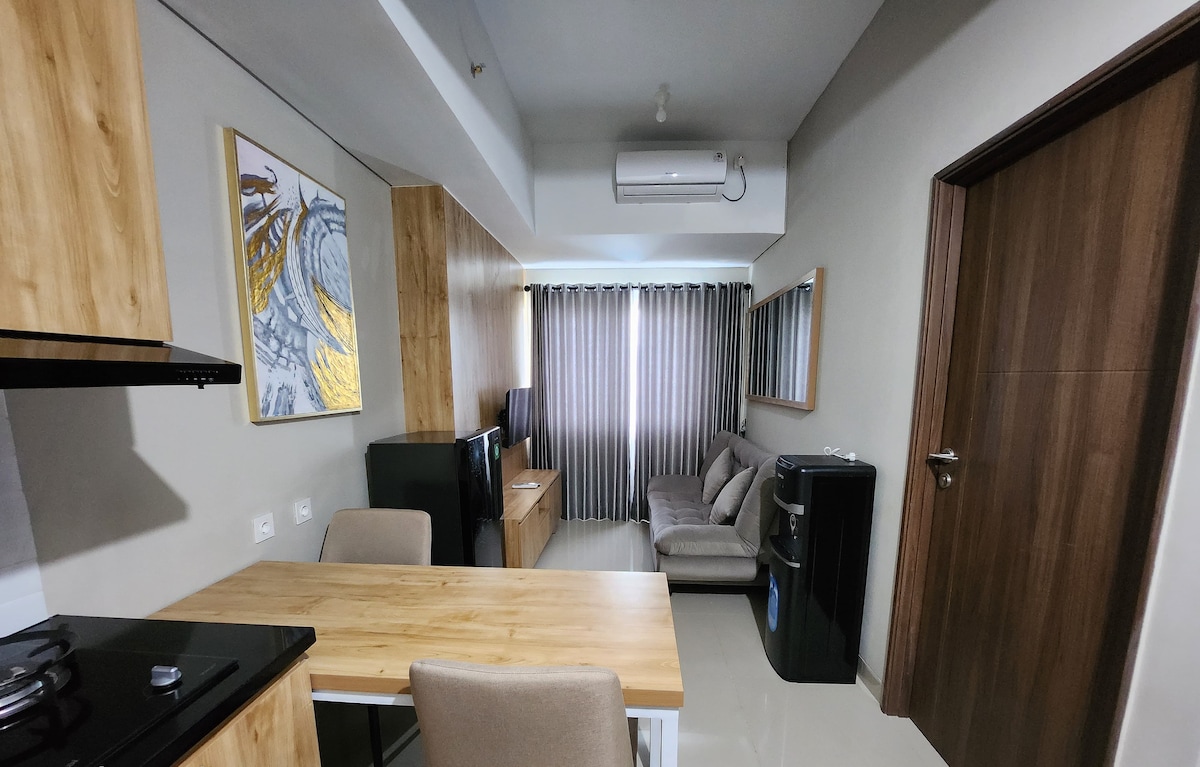 Relax with the family in this quiet place to stay with two very clean & comfortable bedrooms. Strategic location and easy access, the exclusive Podomoro Golf View Apartment is only 300 meters from Exit Toll Cimanggis. The fresh air and green shades are very thick and one of the pluses of staying at Podomoro Golf View Apartment. In addition, Podomoro Go|f View Apartment is equipped with various facilities, such as: At Thohir Mosque, 24 hours Minimarket and other Commercial Centers.