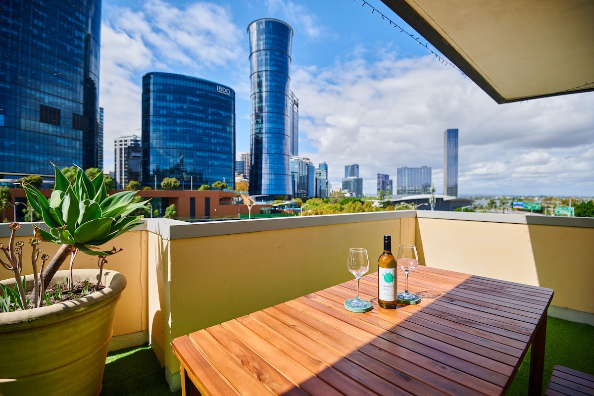 Experience Skyline Haven, a stunning 3-BR waterfront penthouse in East Perth for 6 guests. Enjoy breathtaking 260-degree skyline & Swan River views from a private wraparound balcony. This 5-star stay is perfect for families, couples, or business travellers, featuring a gourmet kitchen, dedicated workspace, and free parking. A luxurious city escape with unforgettable sunsets.