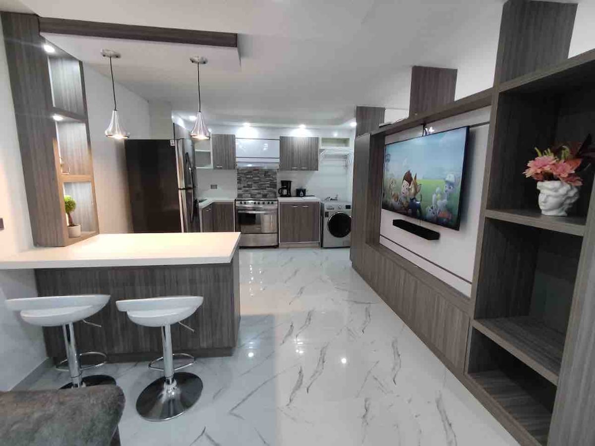 Modern apartment in Ciudad Jardín, Cali Enjoy a newly remodeled space, ideal for 4 guests. It has 2 bedrooms with air conditioning, 2 full bathrooms, equipped kitchen and laundry area with washer and dryer. Includes covered private parking and 24/7 security. Located in the exclusive sector of Ciudad Jardín, near the Fundación Valle del Lili clinic, MIA transport and hotel area. Perfect for short or long stays Reserve now!
