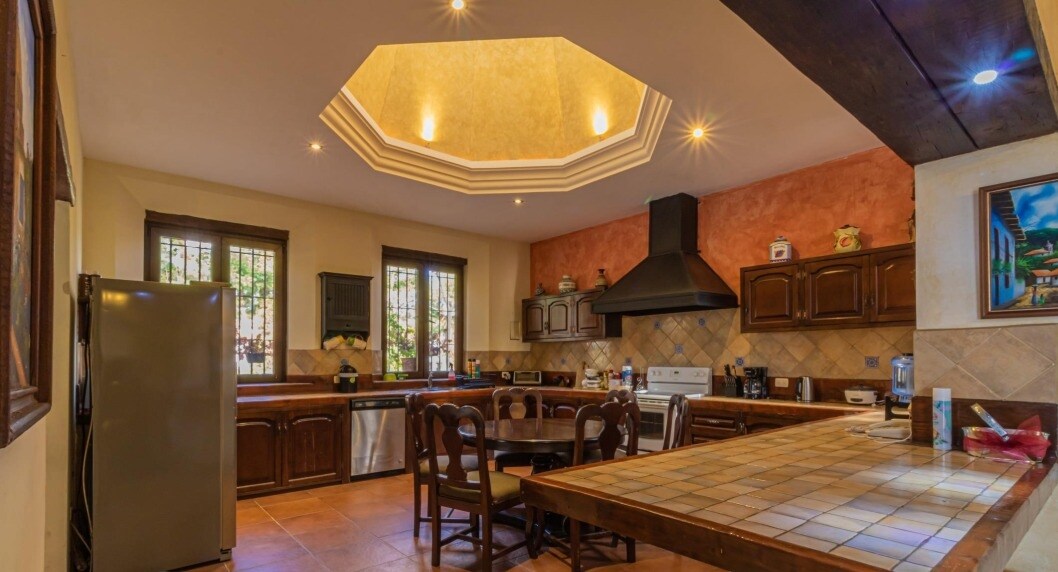 Welcome to our charming Macas 2 country house near Antigua, Guatemala. This picturesque retreat is set in a natural, cool and peaceful environment. Just 15 minutes from Antigua by car, with a view of the water volcano from the balcony and 5 minutes from Cervecería 14. Ideal for children with open spaces and a tree house. Cozy for adults, with Jacuzzi and comfortable living areas. It has a remote work area, several churrasquera rooms. At the gates of San Miguel Dueñas.