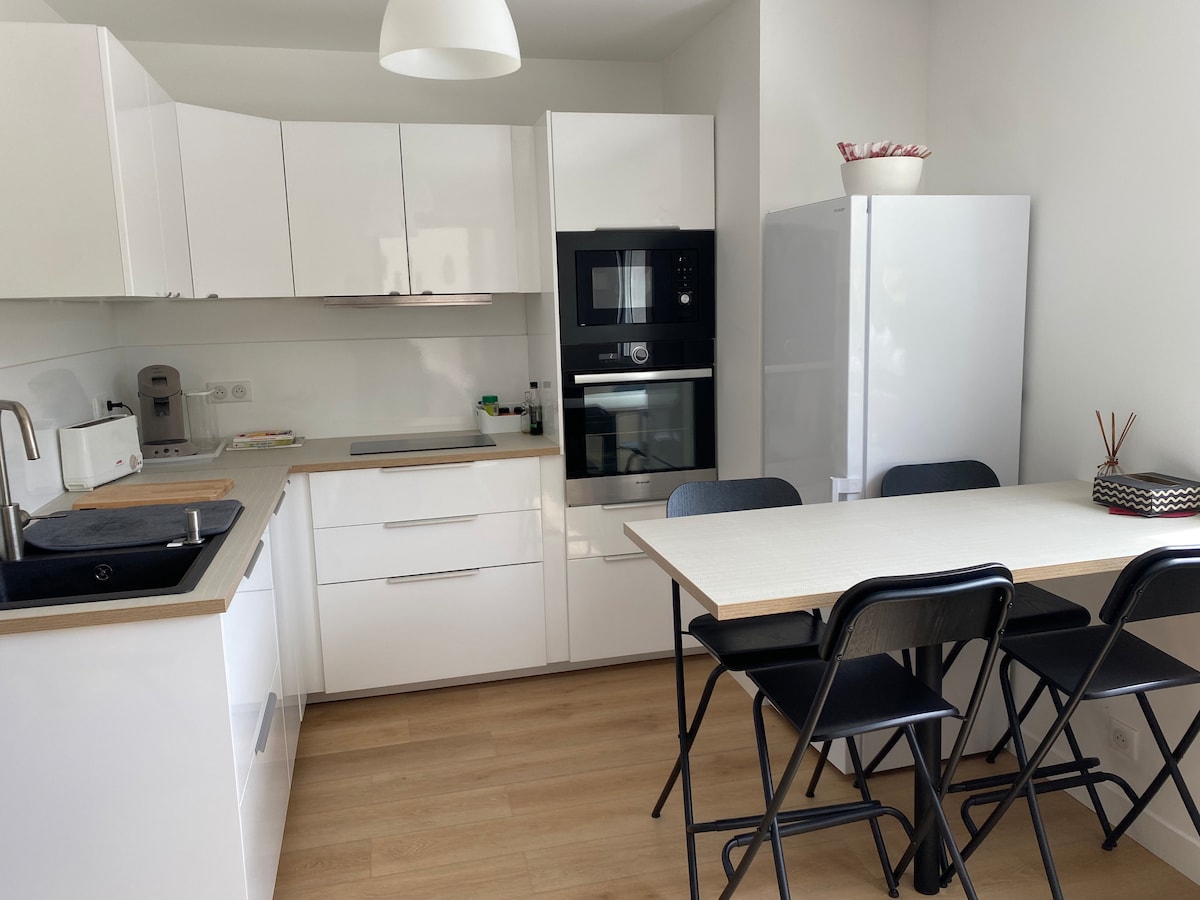 Comfortable 40 m² independent 2-room apartment, with terrace and petanque court, located in villa and pine forest on the edge of the forest, all 20 minutes from the beaches, airport and TGV stations. The apartment is located in a discreet location, in a cul-de-sac, with parking spaces and close to a shopping area (supermarket, fast food, banks, pharmacy, restaurants and laundromat). Access to the tram is a 15/20-minute walk and we have direct access to bike paths for walks or hikes.