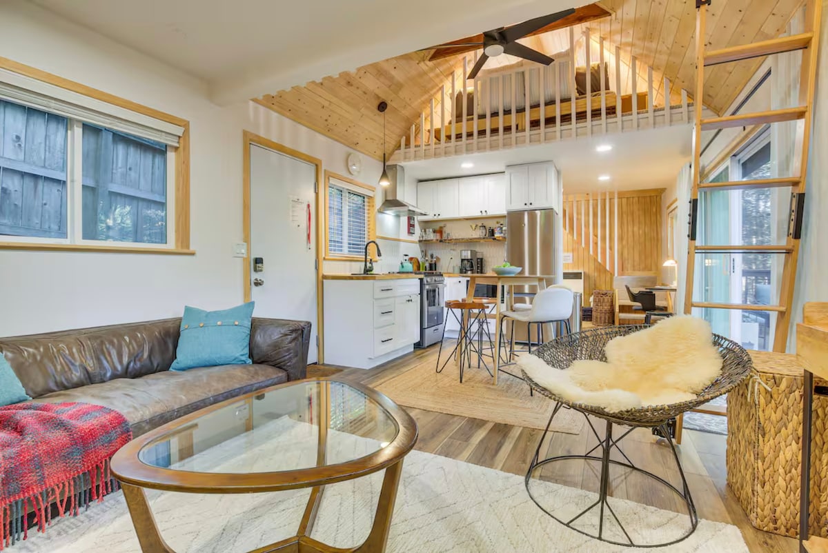 Cozy Contempo Cabin/ Private Hot Tub/ 1 mi to Lake