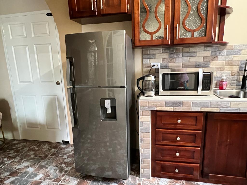 Come and enjoy this gated community style home 🏡 that includes a 1.5 archer backyard farm ( fruits, vegetables, and chickens). It is one bedroom apartment with a KING SIZE bed can be broken down into TWo SINGLE beds to accommodate two single persons. AC, HOT WATER, CABLE TV & THE ENTIRE UNIT WITH YOUR OWN VERANDA EQUIPPED OUTSIDE TV & PRIVATE ENTRANCE.