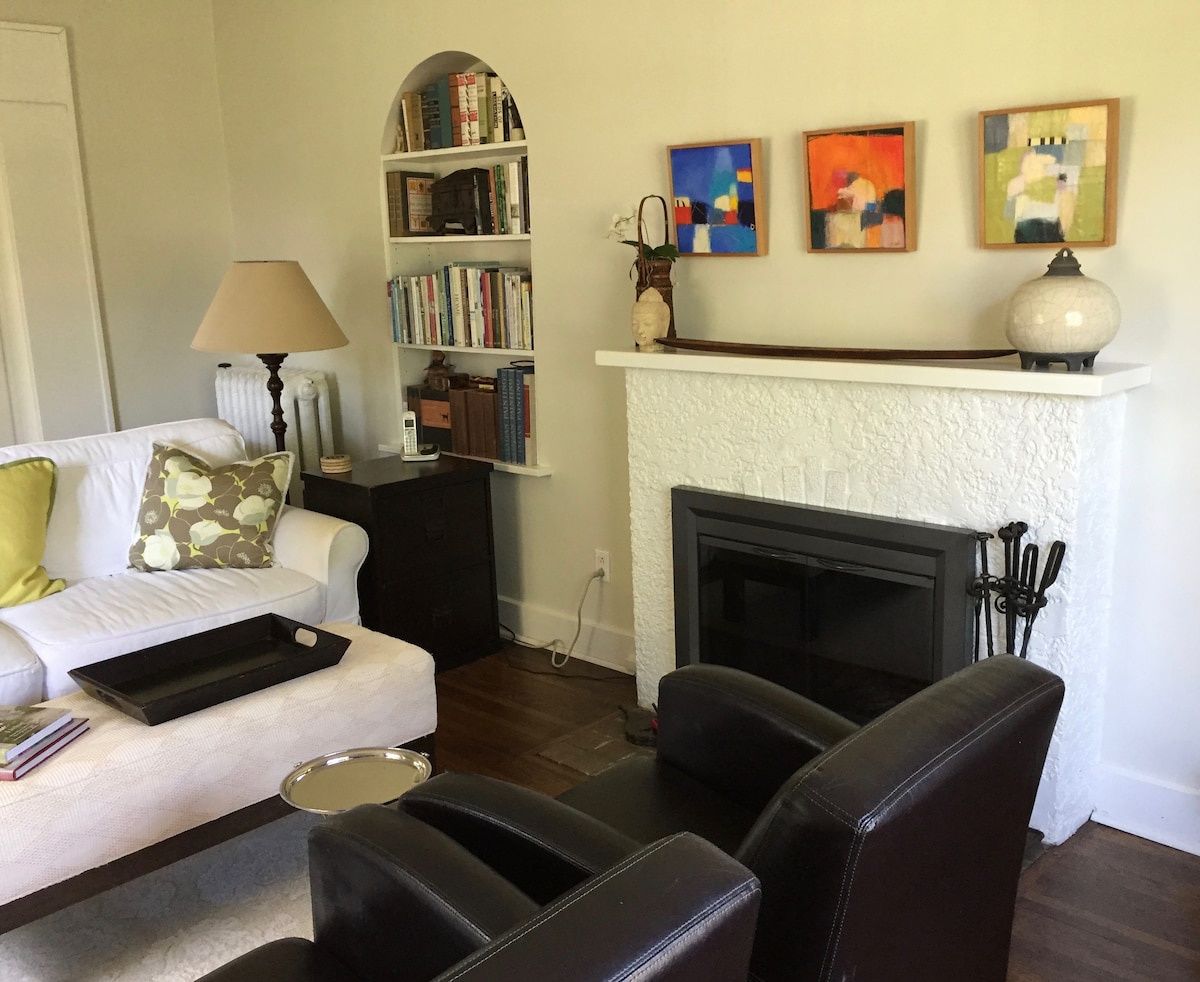 Possibly the most charming home in Yellow Springs, one block to downtown. No expense was spared in restoring and renovating this 1800's cottage, with charming iron pane windows, original wood floors, screened porch, and fireplace. We lovingly renovated the kitchen, bathrooms and upstairs ensuite bed and bath. Two queen beds, luxurious linens, towels, fully equipped kitchen with Viking range, stainless steel appliances, & marble countertops. Not suitable for children under 12.