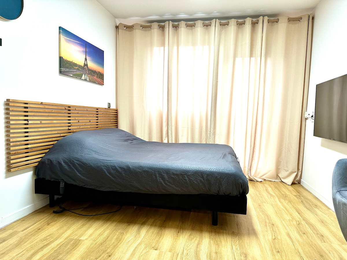20 m2 one-room studio, all comforts, bright, refurbished, located on the 2nd floor, elevator. it is close to Paris, and the Stade de France metro 14 and RER C at the foot of the residence It can accommodate 3 people (160 x 200 double bed or two separate single beds and an extra bed) A shopping mall is in close proximity Laundry is available on the 1st floor of the residence A drink dispenser on the ground floor NO SMOKING Quiet residence, parties prohibited