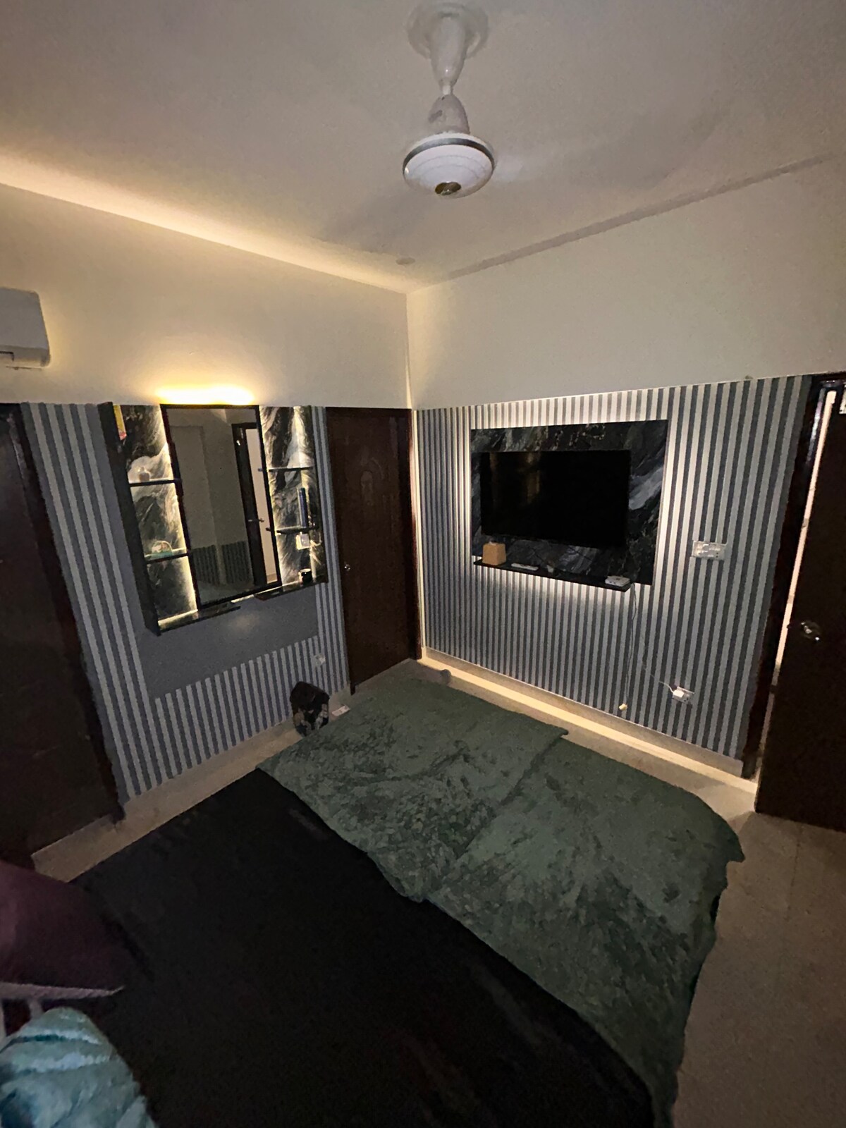 Entire Apartment with AC, WiFi, and Smart LED TV Your private, secure oasis awaits! This cozy, fully furnished apt is perfect for a peaceful getaway. Featuring a spacious bedroom with a king-size bed, wardrobe, dressing mirror, and Android LED TV, The attached bathroom includes a commode, shower, and wash basin, enough for a relaxing stay The kitchen is equipped with a refrigerator, microwave, and a dining space for two, making it easy to enjoy home-cooked meals. A second room with a small bed