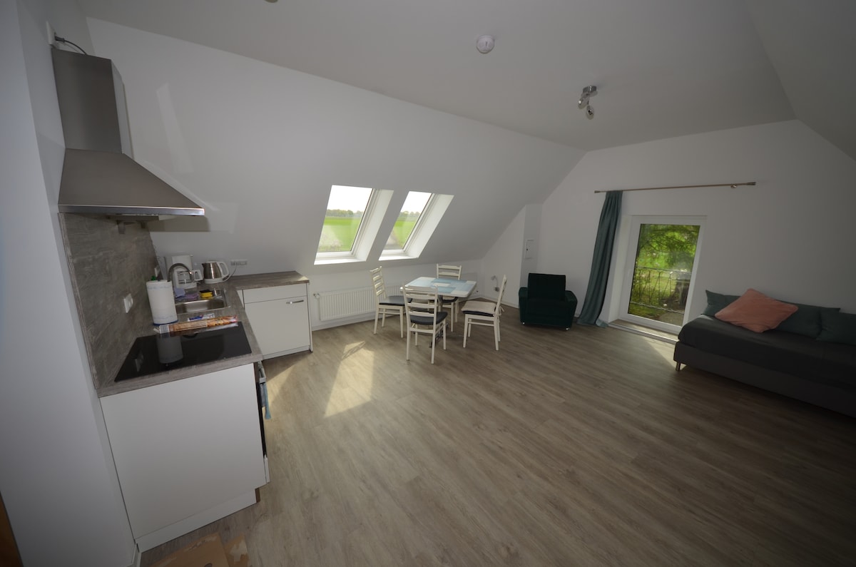This cozy attic apartment is very lovingly and tastefully decorated. It is located in a quiet residential area above a garage in beautiful Lastrup and has its own entrance. It has a beautiful, bright bathroom with a bathtub, vanity and toilet. Just one street away is the natural swimming pool with indoor pool. The beautiful village park with lake as well as restaurants, shopping, pharmacies, doctors, hairdresser etc. are reachable in a few minutes' walk.