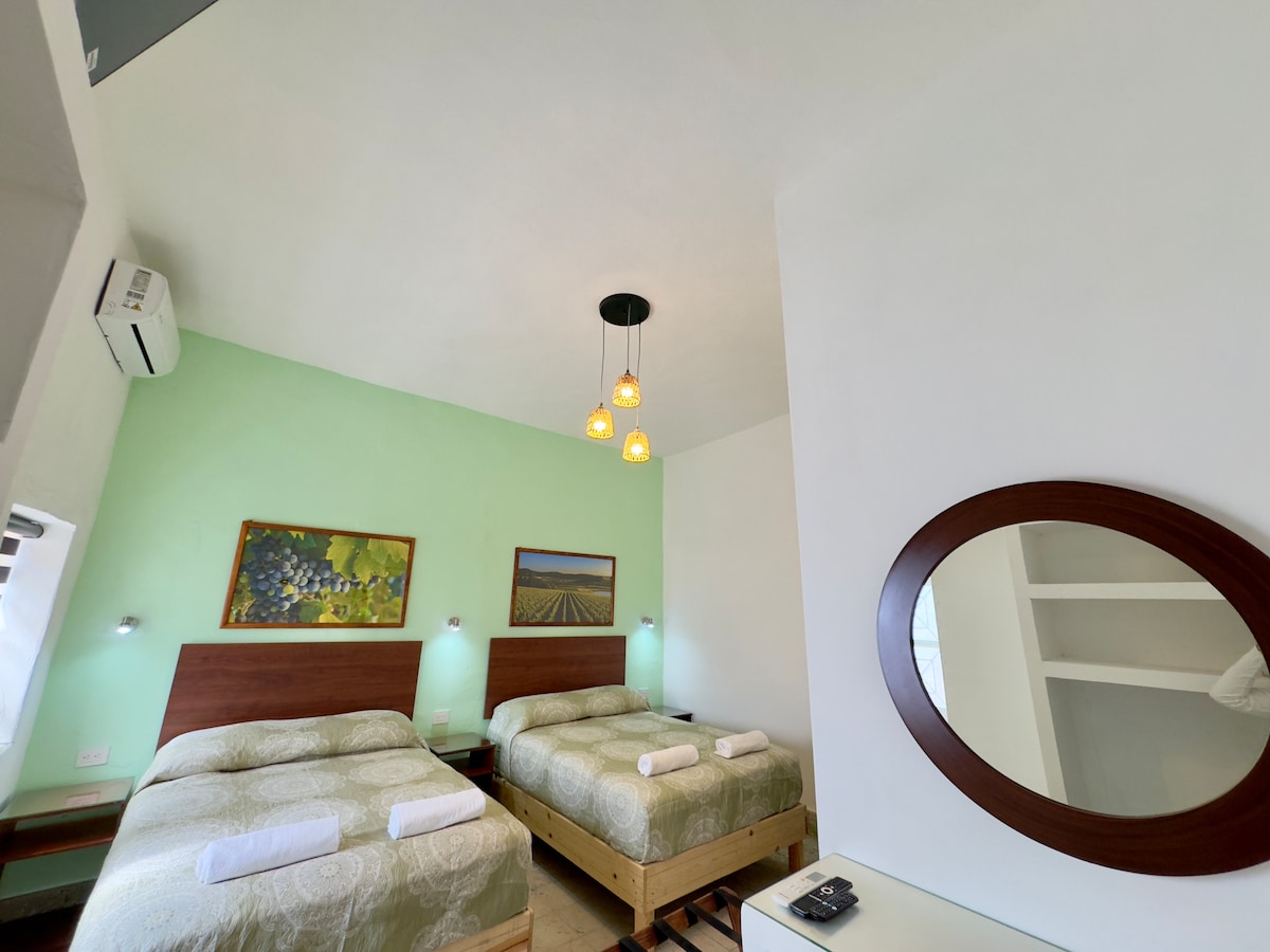 Abrimos nuestras puertas Abril 2023! Ven a conocernos! Localizado en la Plaza Principal de Villa de Santiago frente a la iglesia de Santiago Apostol Recamara Verde -2 camas individuales -Baño completo -TV -A/C y calefacción Located at the main Plaza of Villa de Santiago right across the cathedral of Santiago Apostol Green Bedroom -2 individual bed -Full Bathroom -TV -A/C & Heating