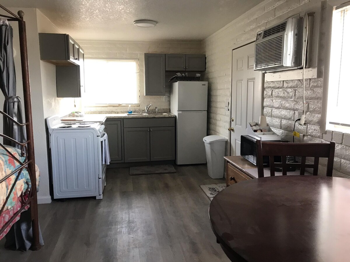 Experience the tranquility and remoteness of desert living in this private studio suite with a kitchen, hot tub, and mature vegetation that wraps the entire porch. Use this as a base for your adventures in the area. Whether rock climbing the granite domes, strolling along abundant hiking trails in both the Dragoons and Chiricauhua mountains, exploring old mines, sipping wine at a local vineyard, or searching for local flora/fauna: relaxing after in this sanctuary is the perfect end to the day.