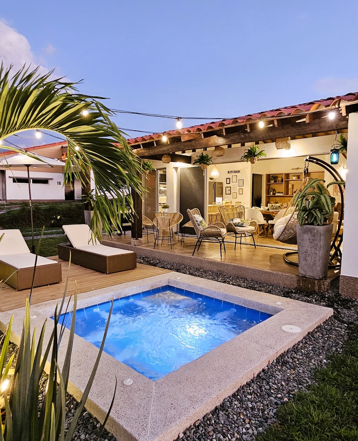 Discover tranquility in our new rural retreat near Armenia, immersed in the charm of the Coffee region of Colombia. If you are looking to get away from the hustle and bustle of the big cities, look no more. Your perfect getaway offers: 🛏️ King size bed in the Master room 🛁 4 full bathrooms 👨🍳Fully equipped kitchen 👙Relaxing heated jacuzzi 🃏Family room with games 💻 Office spaces with high speed internet 🌷Private community full of nature 🎢 Close to main attractions