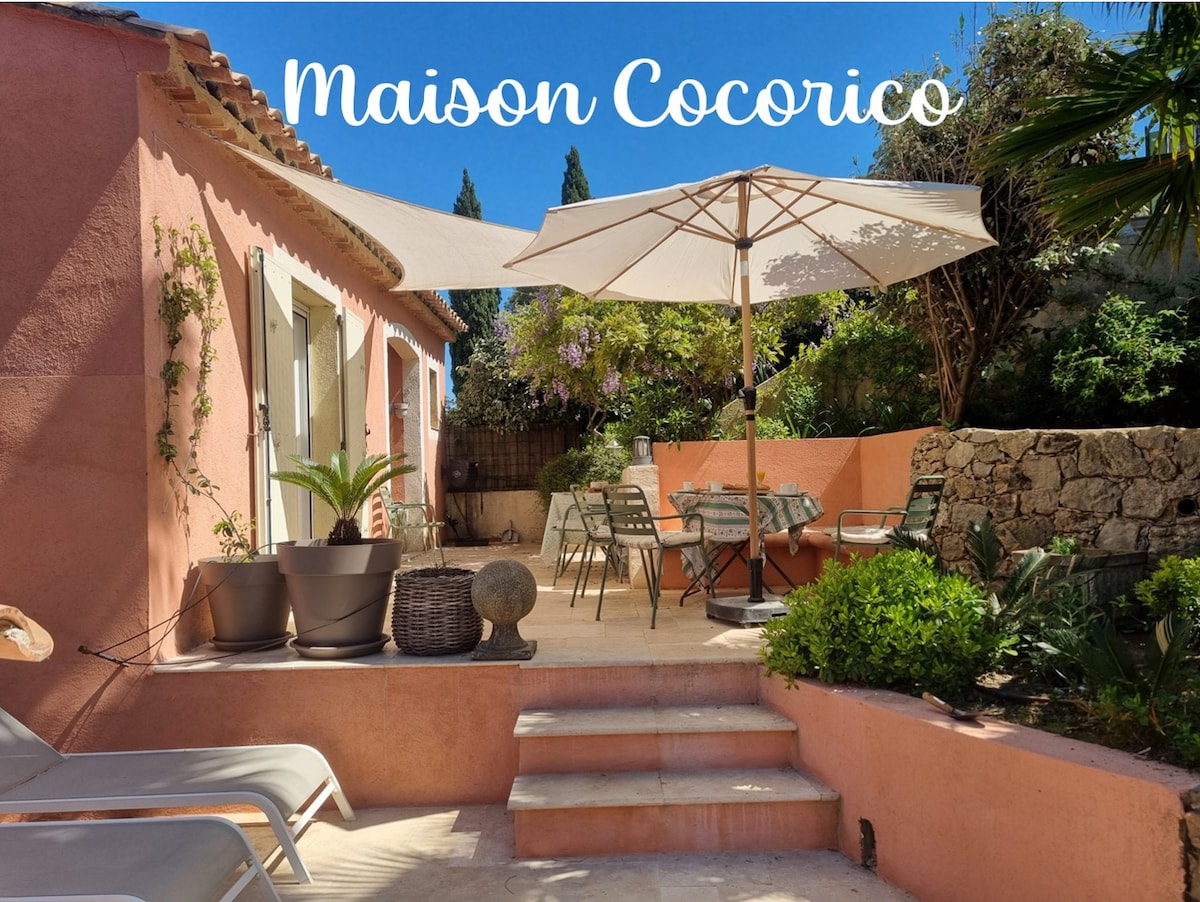 Independent studio in our house located in the heart of a wooded garden in a quiet and residential area of Cogolin, a small dynamic town in the heart of the Gulf of Saint Tropez. Garden area with table, chairs, deckchairs and barbecue. You will be totally independent. Equipped with fiber internet, smart TV (Netflix, Prime Video) and access to recharge your electric vehicle (charging fee)