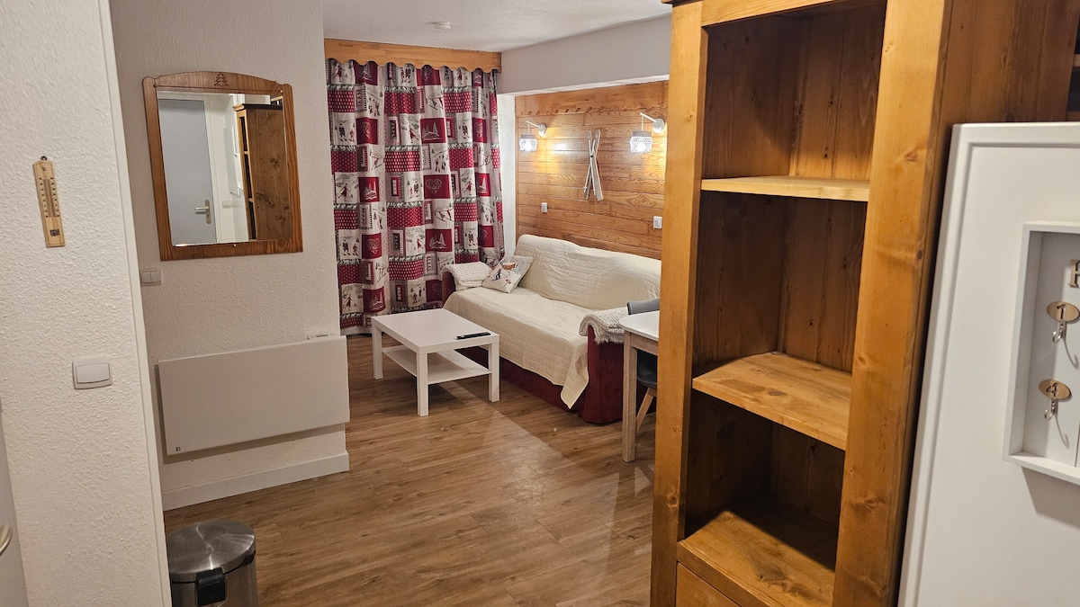 Relax with the whole family at this peaceful place to stay, completely redone (bedding, paintings, floors, double glazing, radiators...). 2-room apartment, sleeps 5. Kitchen area with 4 electric cooking rings, dishwasher, mini oven, microwave, raclette, fondue, etc. Ski locker, private parking... Balneotherapy, bowling, cinema, within walking distance. 5 minutes' walk to the ski slopes and shops. Shuttle at the foot of the residence.