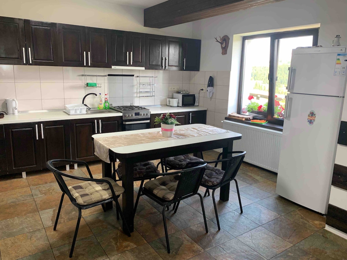 Maria House is located in Piatra Fantanele-Tihuta, 20 km from Colibita and 2 km from Dracula Castle. The cottage has a number of 5 rooms, the maximum accommodation capacity being 14 people. From the floor of the property you can admire the Calimani Mountains and the Rodna Mountains in all their splendor, regardless of the position of the rooms. Each room has its own bathroom and terrace where you can serve your morning coffee while admiring the dreamy view.