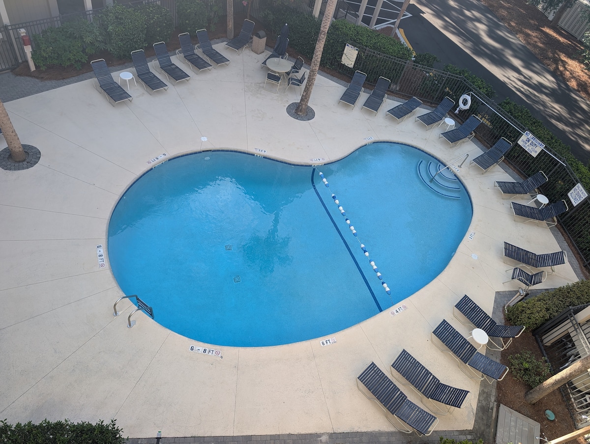 Come relax and enjoy Hilton Head on South Forest Beach, the most popular section of the island. Ride our free bikes for a quick trip to Coligny Plaza where the quaint local shops and restaurants are. The beach is a quick 2 or less minute walk and the pool is just down the hall. Our condo is small, but perfect for a couple's getaway or a memorable trip with the kids. We have everything you need to help make yourselves at home with full size kitchen appliances and washer/dryer room just next door.