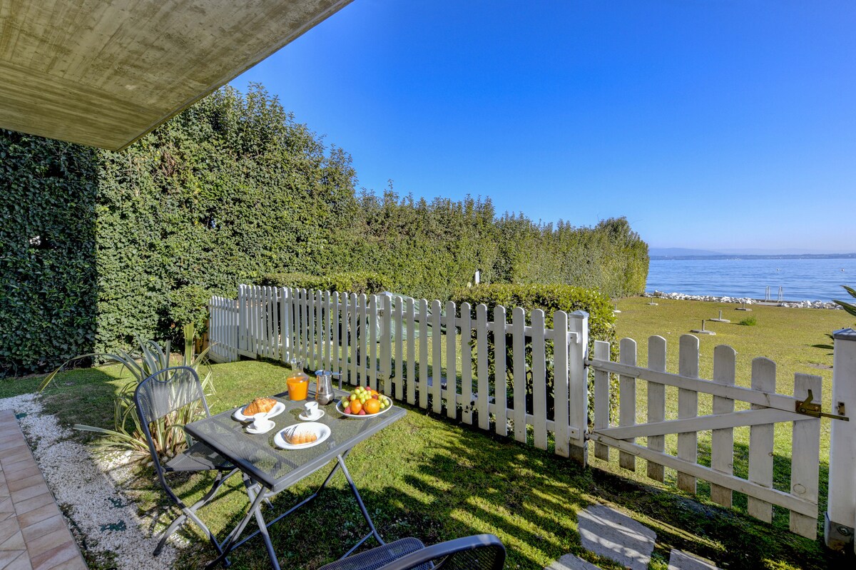 Norma/Tosca two-room apartment: located on the ground floor, it has a private fenced garden from which you can directly access our private beach. This beautiful apartment of about 45m2 offers a breathtaking view of Lake Garda and is the ideal starting point to explore Sirmione. Located just a 15-minute walk from the historic center, the location is perfect for enjoying the tranquility of the lake without sacrificing the convenience of being close to the main attractions.