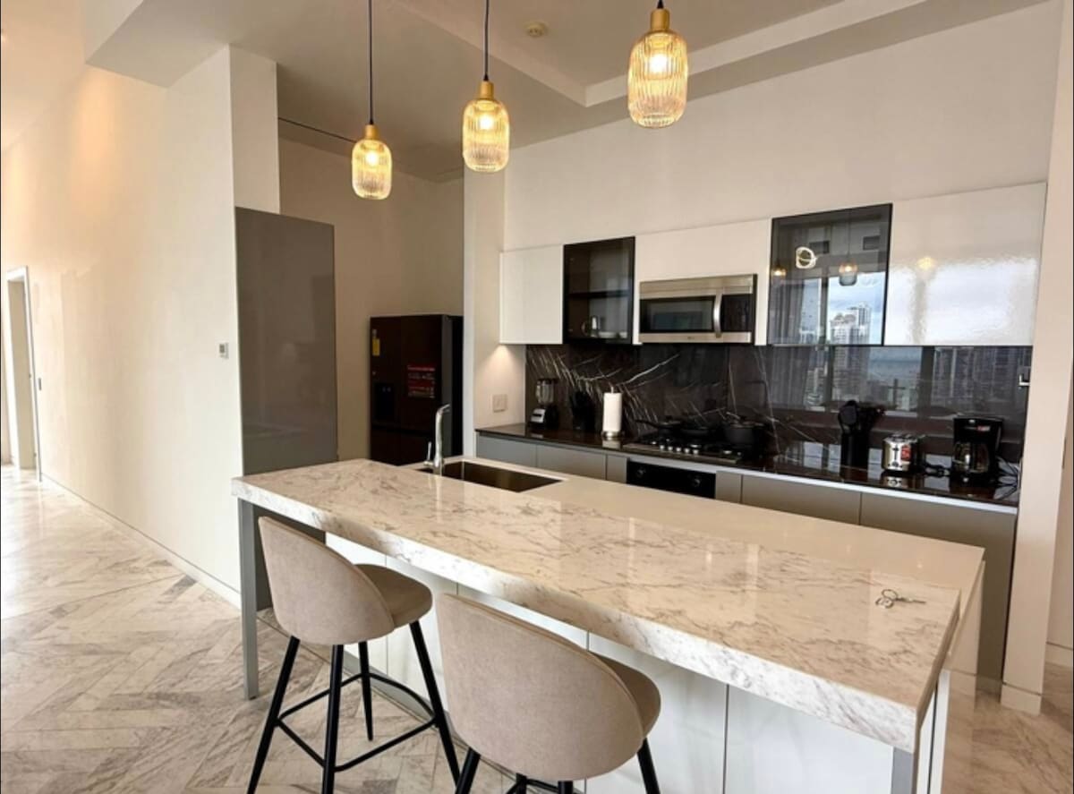 Este lugar tiene una ubicación estratégica: ¡será muy fácil planear tu visita! Ph Yoo and Arts, ubicado en Av. Balboa, súper céntrico Esta hermosa y moderna propiedad cuenta con un estilo único y una vista al mar increíble, piso alto, 2 habitaciones, 2.5 baños completos, Lavanderia, amplia terraza, luces dimeables en todo el espacio, sala comedor, sala de películas, espacio de trabajo, 3 smart tvs, 3 aires acondicionados céntrales, cocina full equipada, cristalería moderna.