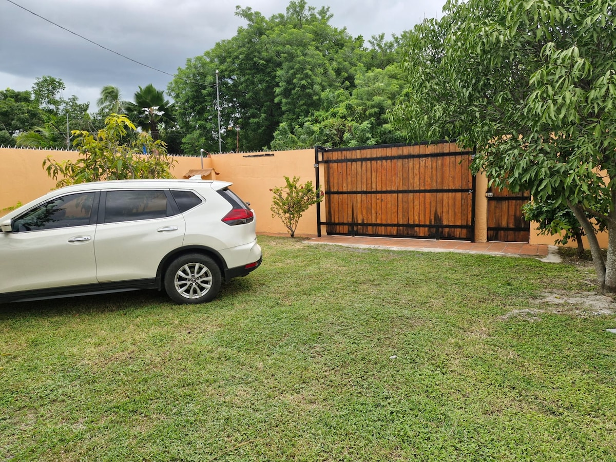 Relax with the whole family at this peaceful place to stay in Santa Clara. The house has 3 bedrooms (each with its own bathroom, A/C, ceiling fan, Queen size bed and closets), a full guest bath, a beautiful pool, covered terrace, outdoor shower, fully-equipped kitchen, laundry area, living-dining room with A/C and ceiling fan, showers with hot water, and a perimetral fence. This is the perfect place to spend an amazing vacation, close to the Santa Clara beach!