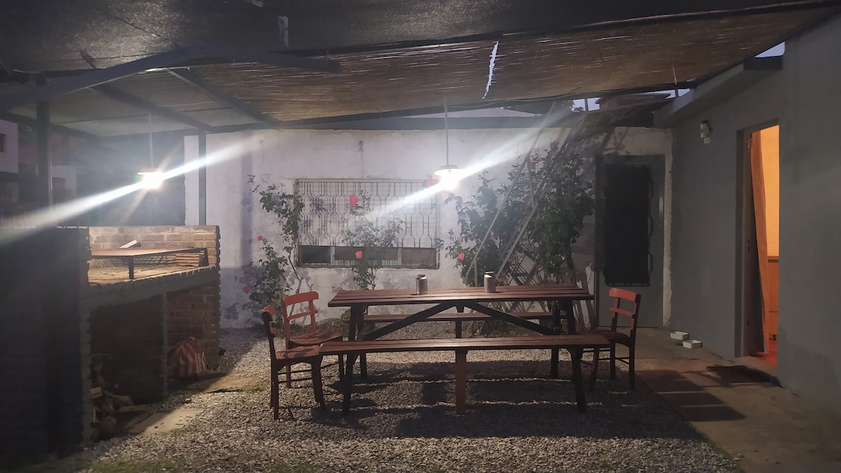 It is a room with a double bed with bedding and towels. It has a countertop, microwave, refrigerator, electric kettle, dishes, cutlery, glasses, table, and chairs. Backyard with grill. Small private bathroom. Spectacular place on Rambla Costanera, 10 blocks from downtown. Excellent transportation. Privileged place!!!!!