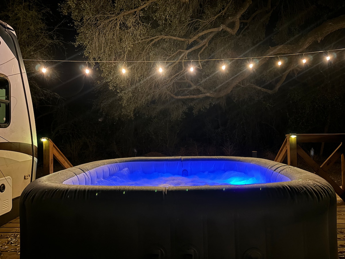 Chill on your deck at night soaking in the beauty of the sun setting over the lake, & marvel at the "firefly" solar lights in the tree illuminating your private nature sanctuary. Relax in your private hanging tree hammocks, or have some fun on the water and rent ON-SITE kayaks, paddle boards, or canoe. Rejuvenate with a private yoga, personal training, or massage session? We are a 4 minute walk to Stonehouse Vineyard winery, and just up the road from Krause Springs spring-fed swimming hole!