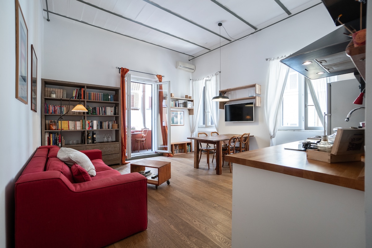 A newly renovated house, in that Trastevere where all the Romans would like to live. Between the church of “Santa Cecilia” and that of “San Francesco a Ripa”. Immersed in history, in a mood of peace and poetry. Let yourself be overwhelmed by the heart of Rome in an apartment where light and the sky reign supreme, where you can enjoy a breathtaking view of the Aventino Hill and with a 2-minute walk, among unforgettable characteristic alleys, you can reach all the attractions.