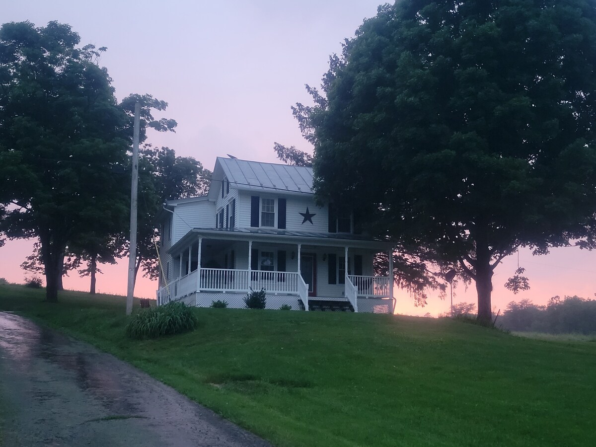 *WIFI NOW AVAILABLE *Newly renovated 3-bedroom, 3 bathroom home located on 48 acres of farmland. *Large backyard with a fire pit &seating *First floor has a fully equipped kitchen, living room, full bathroom, laundry room, & bar area. *Second floor has three bedrooms & two bathrooms. *Linens &towels provided *Deck with a gas grill for you to enjoy *Home can accommodate up to 9+ guests *Parking for 5 to 6 vehicles and trailers *Natural surroundings, very quiet,& peaceful