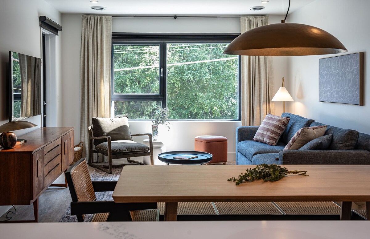 Welcome to Summit Solitude, a peaceful and spacious vacation rental that lives up to its name. Perched on the 3rd floor surrounded by treetops and mountaintops, this contemporary 2-bed/2-bath condo offers a place for you to retreat, relax, rejuvenate, and reconnect. The sophisticated and minimalist interior design will help you decompress from the hustle and bustle of your everyday routine. The 2 twin beds can convert into a king, and the daybed in the living room is suited to a petite single.
