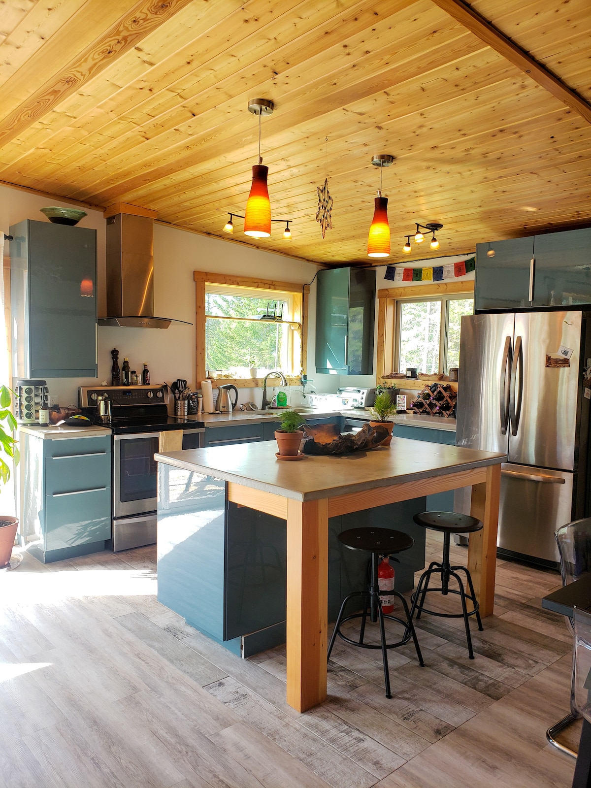 The Stairway to Heaven is the place to get away from it all or do it all! Relax on the 16 foot high wrap around deck...one of the biggest you will ever encounter! Approx 1000 sq ft of natural cedar; perfect for viewing wild life, dining in the outdoors, basking in the sun and taking in the spectacular mountain views. When the sun goes down, decompress in the luxurious cedar sauna or star gaze in the hot tub. This house is perfect for families or friends to experience the outdoors.
