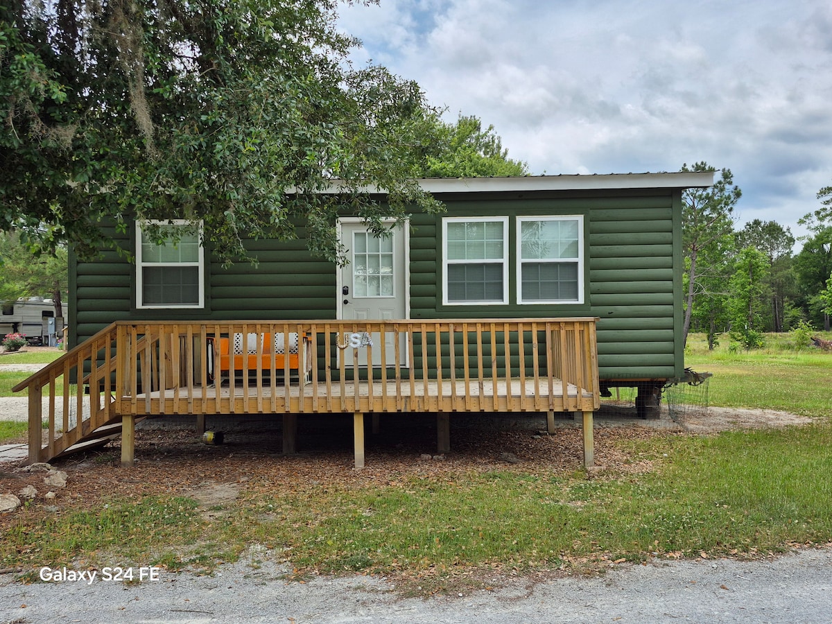 We offer one of the area’s only PRIVATE lake retreats. Come and enjoy a getaway in our peaceful lake community! The Town of Lake Waccamaw was incorporated in 1911, however, was inhabited by Native Americans for thousands of years. Southeastern North Carolina was covered by a shallow ocean more than two million years ago and you might find interesting fossils including sharks teeth, shells and coral as you swim in the shallow water. Be sure to visit Lake Waccamaw State Park to view the 2.75 million year old whale skull that was discovered embedded in a limestone outcropping several years ago. Measuring nearly 9,000 acres, the lake is unique in many ways ecologically with several endemic species of fish and mollusks (found nowhere else in the world).The lake is about 10 feet at the deepest with shallow waters along its shores, making it perfect for families with children. Tourist attractions include a local museum in a 1904 train depot, Lake Waccamaw State Park, our beautiful library, several restaurants, grocery and retail stores. The guest house is totally private from our home and features a vintage lake theme queen bedroom with flat screen television (Direct TV and DVD player), en suite bathroom with shower. All bed and bath linens are furnished. The common area/living room has a flat screen television (Direct TV and DVD player), a variety of movies, books and magazines, toys and board games for all ages. The fully equipped kitchen has a nice size refrigerator with a separate freezer, electric coffee pot or French press, microwave, and electric stove. A variety of cookware and utensils are available for your use as well as kitchen staple items. A washer and dryer is available in the garage below the apartment. We provide a few basic breakfast items for your first morning. There is a grocery store nearby for most anything else you would need. The living room couch/futon converts to a very comfortable full size bed. There is a large desk for our business clients and free WiFi. Other furnishings include a table with four chairs, rocking chair and leather recliner. Guests have access to an outdoor kitchen with a gas stove, and a double sink. You may use the charcoal or gas grill, enjoy the fire pit (wood provided), several bicycles, and two kayaks. We also have corn hole boards and other yard games you may use. Sorry, we are not able to accommodate your pets, but can recommend a delightful getaway for them. Although our log cabin isn’t on the lake front, it is just steps (the length of a football field!) from your apartment. You may use the pier for sunning, swimming, launching a kayak, fishing, relaxing or picnicking under the shaded canopy. Lake Waccamaw is conveniently located one hour from many beaches in Wilmington, N.C. and one hour from Myrtle Beach, S.C. We personally recommend Sunset Beach, which is about an hour.l