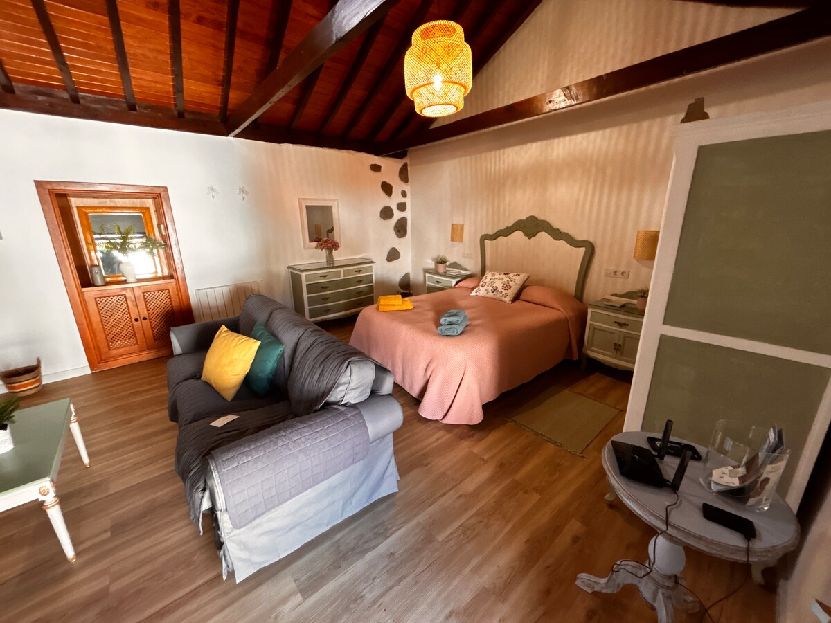 Two-bedroom, with fully-equipped kitchen and bathroom. One full-size-size bed and one twin-size bed It has a terrace and parking. It is an ideal place to spend a few days of rest and tranquility, surrounded by nature and enjoy one of the most authentic places in the Canary Islands. Cave house with two rooms, kitchen and bathroom fully equipped. A double bed and one single bed. It has a terrace and parking. It is the perfect place to spend a few days of rest and tranquility.