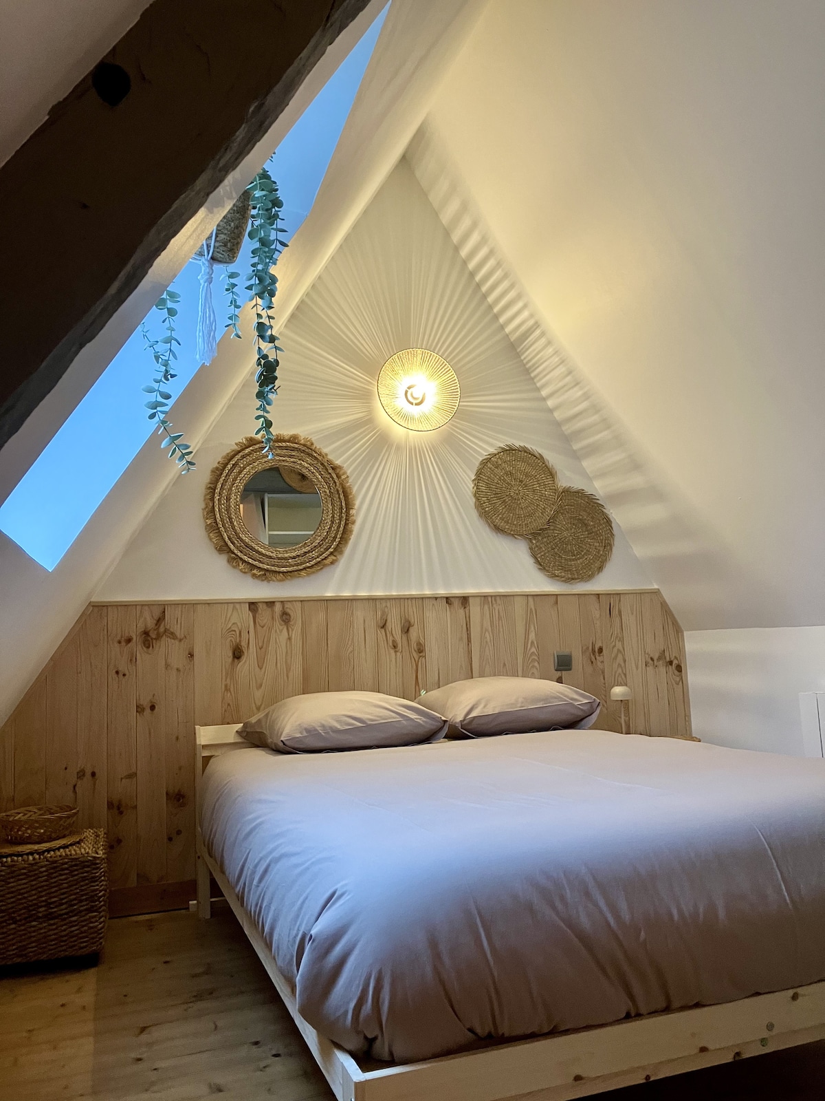 This is an old outbuilding where cider was made, completely renovated on 36m2 on the ground with a floating mezzanine floor. The accommodation is independent and offers all the modern comforts of a current home with all the useful equipment. The private park of more than 5000m2 is accessible to travelers who can also go see the goats and sheep in their enclosure.