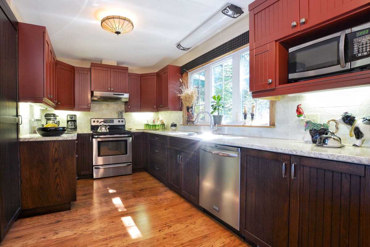 A charming little “Old meets New”cottage in the heart of Port Sydney, Muskoka. less than 5 min walk away from Mary Lake where you can enjoy the beach, have a picnic or even Launch your Water vessels into the lake for a relaxing day. Across the beach you can find a community centre with a play ground and basket ball court perfect for our younger guests. 2 km away from North granite ridge Golf Club; Our area is surrounded by preserved woodlands perfect for scenic hikes and spotting wildlife! ✨