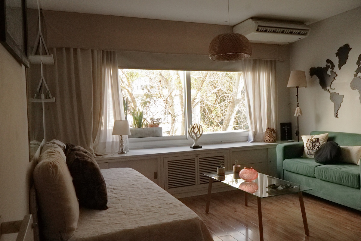 A completely renovated environment! New shower and curtains with remote control! Newly painted! Connect in an atmosphere full of energy and creativity in Puerto Madero. Enjoy a beautiful and clear view of the park. Surrounded by green space, reflecting pools and wide sidewalks, it is the ideal place for waterfront walks at any time of the day. It is quiet, safe and central. Excellent gastronomic area, Feel like a king/queen in this beautiful place.