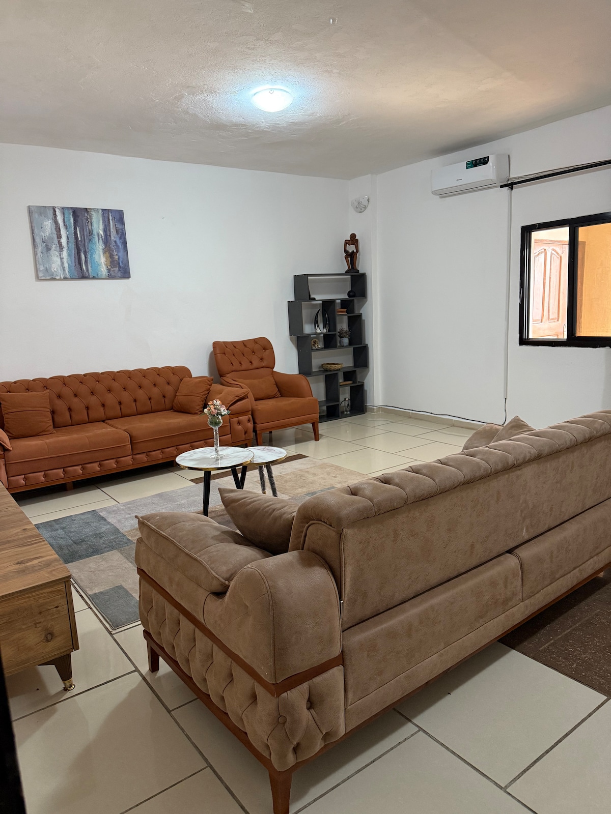 Détendez-vous dans ce logement calme et élégant à lansanyah-barage.,Située 5 minutes a pied au bord de la grande route principale, d'un centre commerciale, d'un marché, une pompe essence total etc.