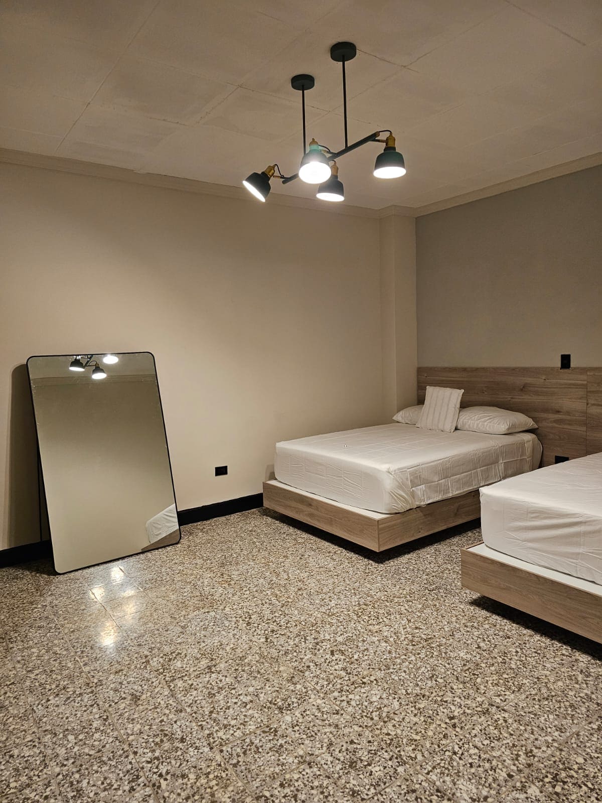Enjoy a comfortable stay in modern rooms with large beds, full bathrooms, air conditioning, Smart TV and hot water. We are Milo's Hostel & Residences, you will have access to a swimming pool, shared kitchen and social areas. Perfect for relaxing close to everything, restaurants and tourist spots in Santa Ana.