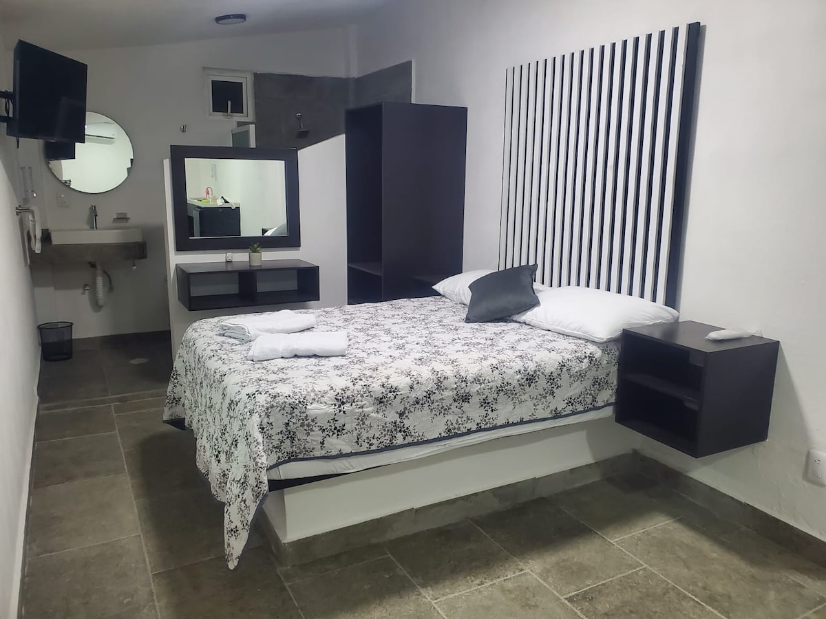 Cuarto de hotel disponible para que disfrutes acapulco, equipado con aire acondicionado, alberca y otras diversiones. Localizada a 5 minutos en auto de playas Caleta y Caletilla y a 10 minutos de playa Hornos o el centro de Acapulco. La propiedad esta muy cerca de restaurantes y tiendas como Walmart (5 minutoss), 24 horas Oxxo, y otros como la farmacia y estacion de gasolina a minutos caminando. La propiedad tiene estacionanmiento gratuito las 24 horas.