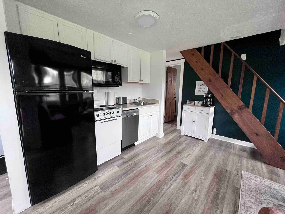 Newly renovated chalet nestled on 15 acres within minutes of Conneaut Lake, Firemans Beach, Icehouse Park, Barbara J Cruises, Conneaut Cellars Winery, restaurants, coffee shop, gift shops, and more. There are 6 chalets on the property. Laundry facility and free parking onsite. 15 minutes from Meadville. Each chalet has a first floor bedroom with full bed, first floor bathroom, kitchen, living area, a loft bedroom with queen bed, and back deck overlooking pond.