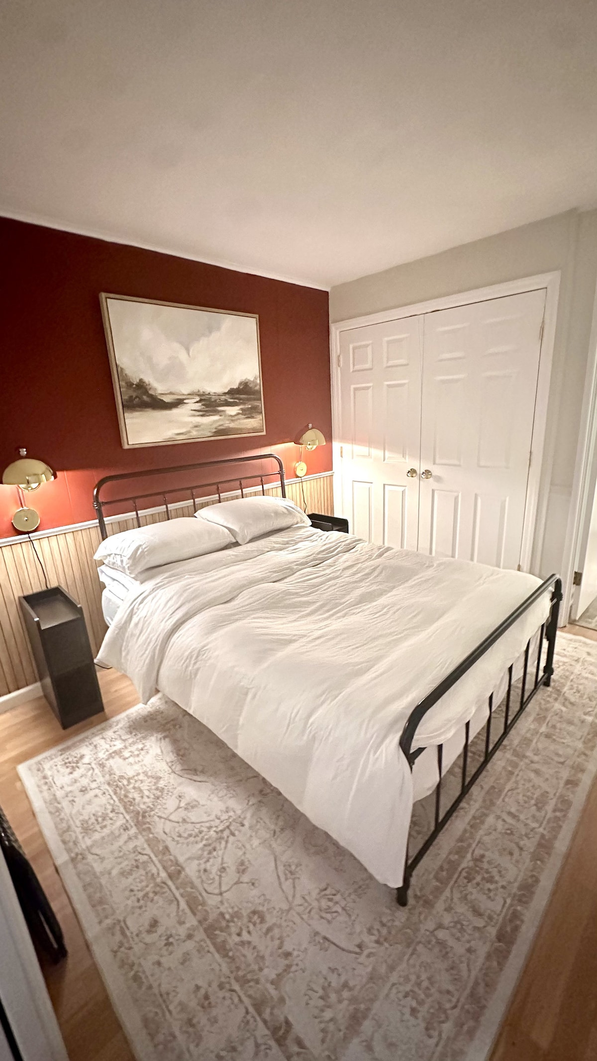 - Sleeps 4 (Queen bed & air mattress) -Heated towel/robe warmer, plush robes, microfiber hair wrap, makeup mirror -Coffee bar w/ french press, espresso machine, fresh coffee beans, flavored syrups, tea -Fully stocked kitchen w/ airfryer, baking essentials, toaster - Access to streaming services is provided (no cable TV) -Barware including cocktail shaker set, champagne flutes, margarita/wine/whiskey glasses -Complimentary toiletries & feminine oriented essentials -Indoor fireplace