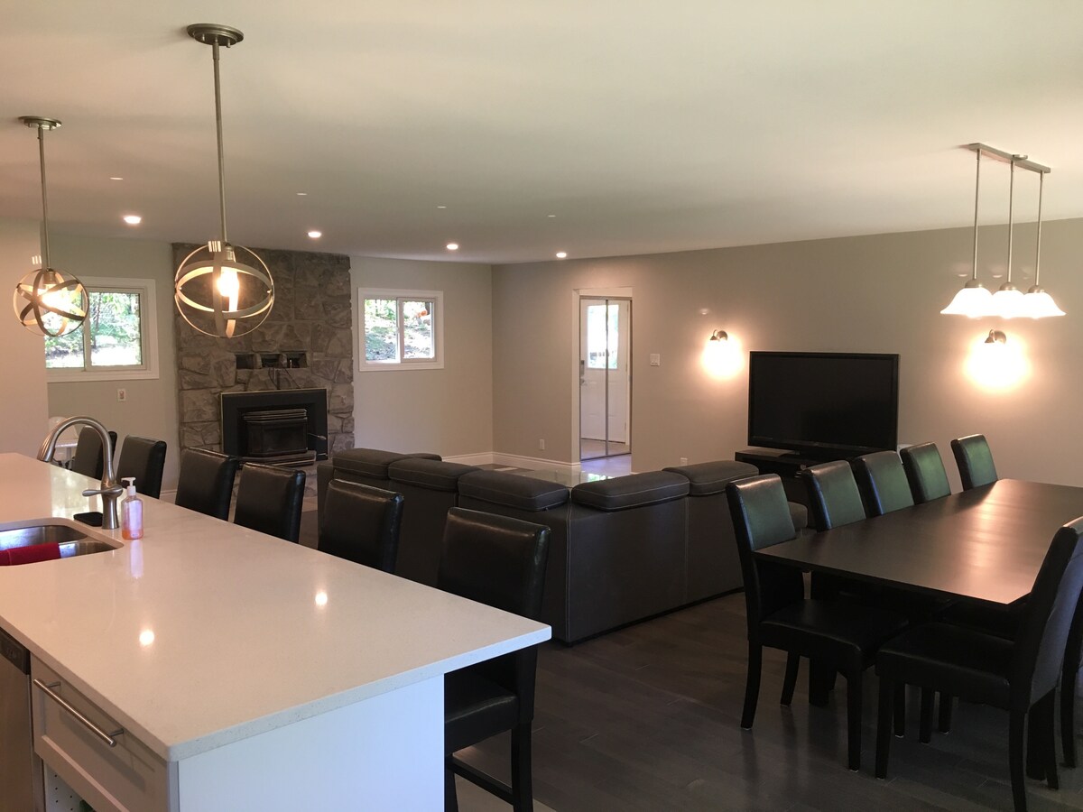 Just a short walk down to the water. Two kayaks & a canoe available for use axe throwing game as well as corn hole badminton. Freshly renovated with a big open concept kitchen/living room and a games room featuring an air hockey, Foosball table and a ping pong table. 5 bedrooms make it a great place for families to come together. Just a short walk or even shorter drive to the general store, LCBO and Happy Times Pizza. Boat launch just down the street from the house. Smoke free and pet free zone