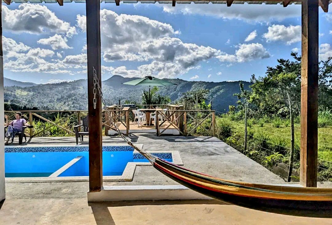 Casa rústica y amplia al estilo colonial con piscina climatizada y vista espectacular del valle de Constanza. 6 hab, 6.5 baños, cancha de baloncesto, billar, bbq, columpio, mesa de dominó, y 2 terrazas, WIFI. Capacidad p/ 20 personas. Rustic and spacious colonial-style house with a heated swimming pool and a spectacular view of the Constanza Valley. 6 bedrooms, 6.5 baths, bball court, pool table, grill, swing set, domino table, 2 terraces, WIFI. Max 20 guests.