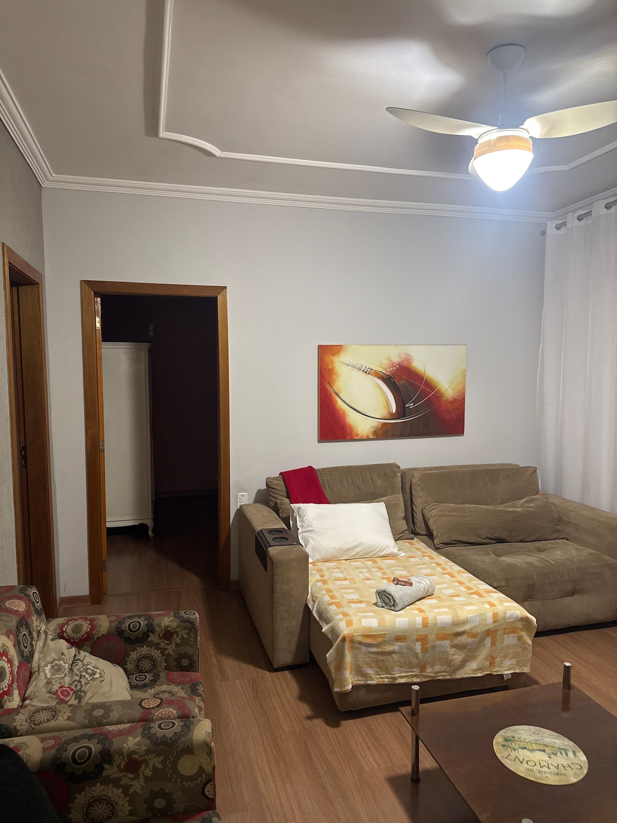Kick back and relax in this calm, stylish space. Hi, I'm your host. Let's get to know a little about the space I've left especially for you. Space with a modern touch, complete and designed for cozy accommodation. It features a 42-inch TV, with Wi-Fi, YouTube, Netflix, Globo Play, and more. A retractable sofa to make you feel at home watching your favorite series! Complete kitchen with everything you need to prepare the best meals, washer and dryer.