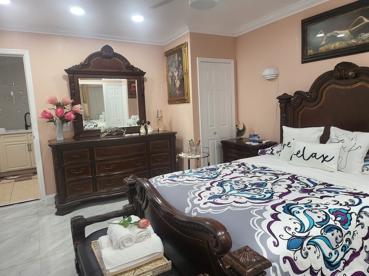 Come relax at this peaceful and centrally-located 1BR Suite. With its own private side entrance to give you the privacy you need so you can feel right at home. Within minutes from all major highways that will take you straight to your desired attractions, restaurants, and stores. Florida Mall 1.3 mi Outlets 5.6 mi Fun Spot 5.2 mi Icon Park 5.4 mi Universal Studios 6.3 mi Airport 6.5 mi Sea World 7.2 mi Disney Springs & Parks 12.7 mi Old Town 16.8 mi