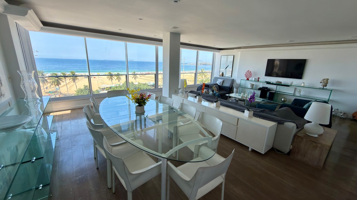 Aluguéis apenas via AIRBNB! Newly renovated and equipped to give you the best experience you can have in Rio de Janeiro. Located in the front of the most popular beach in Brazil, the whole apartment has a view to the ocean: you can cook watching the sea, watch the sunrise in the living room, wake up watching the beach from the beds, and relax in a hot tub while looking to the shore. It has split air conditioner in each room, Wi-Fi & TVs. Plants, arts, and crystals compose the atmosphere.