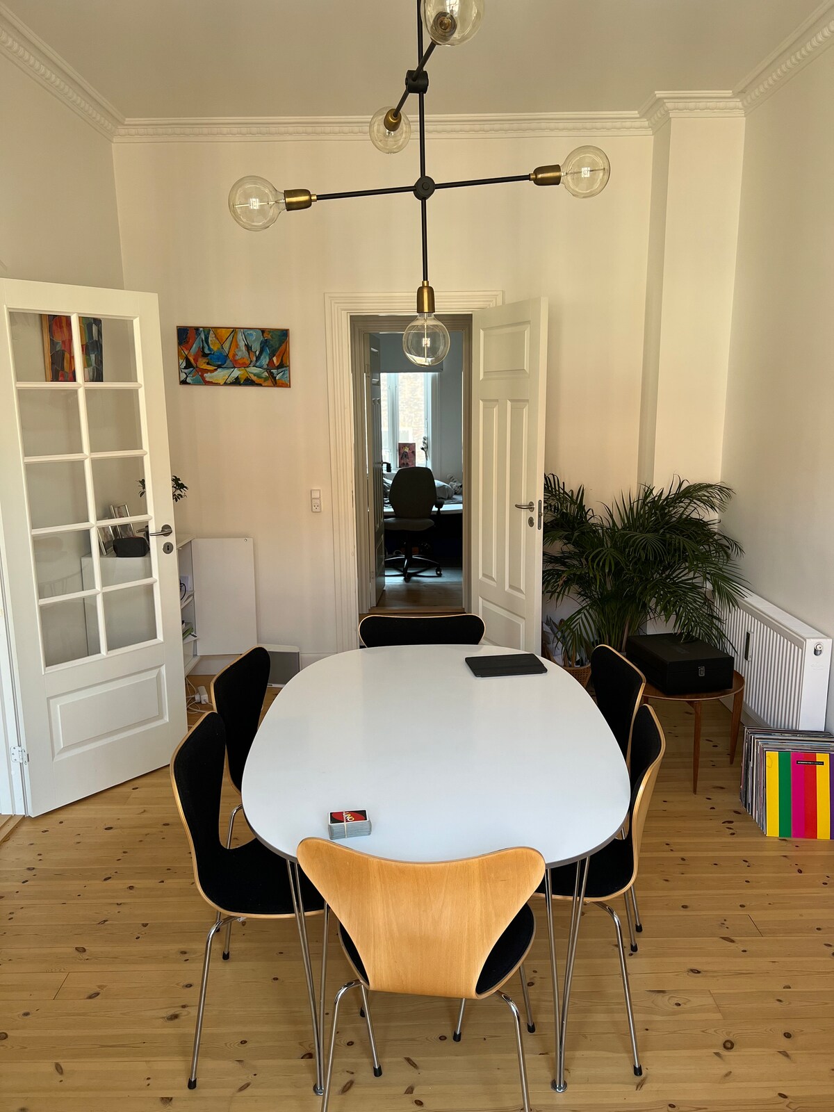 This apartment is located in the absolute best part of Vesterbro, where you have easy access to lots of restaurants, cafes, wine bars, parks, playgrounds and all transportation to the city center. In addition to 108 lovely m2, you also have a 12m2 balcony with afternoon and evening sun, which invites you to enjoy both good food and wine. 5 minutes walk from the apartment is Engahve Square, which is an absolute hotspot in Copenhagen and also has Metro, which leads you to all the places you want in Copenhagen.