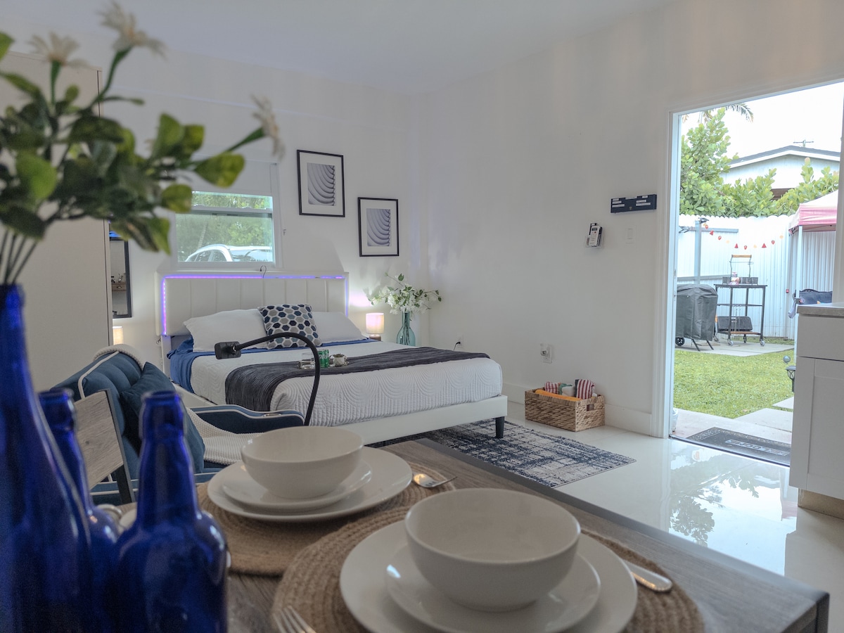 Modern country decoration, separate bedroom, bathroom, fully equipped kitchen, common area with sofa bed, washer and dryer, patio with barbecue and seats for your enjoyment. Everything you need to feel at home! This convenient location is near to the beautiful Everglades and Biscayne National Parks ( The largest subtropical wilderness in the United Sates) and many great beaches and entertaining night life in the Florida Keys! Location is a perfect choice for those traveling to Miami or the Keys!