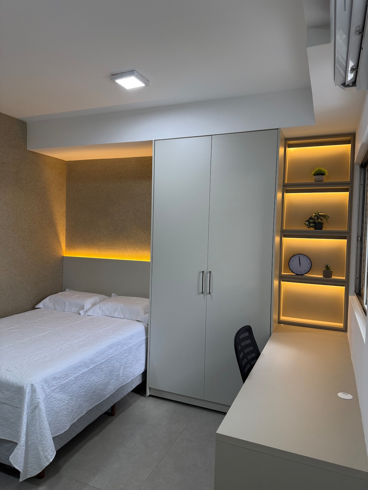 Curta uma experiência incrível neste lugar lindo e aconchegante. Apartamento para curtas ou longas estadias, acomoda confortavelmente 2 pessoas. Para o show rural podemos colocar cama reserva. Perfeito para lazer ou trabalho. No centro, a 500 m da Catedral, a 200m do Central Park, mercados, bancos, clínicas e hospitais. A 20 min aeroporto. Muitas opções de restaurantes e bares. Portaria 24 horas. Fechadura digital. Cama de casal. Ar condicionado split. Vaga de garagem.
